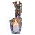 Tussen de eerste en tweede kandelaar zweven twee duiven, en tussen de derde en vierde kandelaar verschijnt een engel.